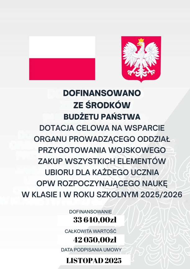 Środki te wspomogą naukę uczniów Oddziału Przygotowania Wojskowego (OPW).