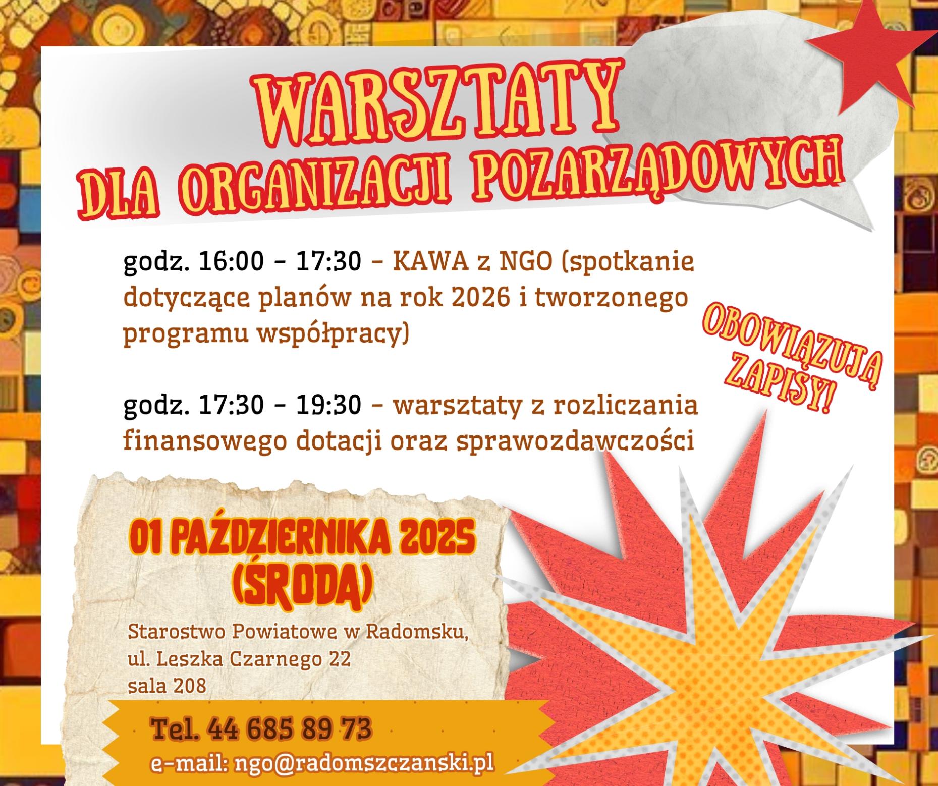 Będą to praktyczne warsztaty, na których uczestnicy dowiedzą się o najczęściej pojawiających się błędach w rozliczeniach oraz jak ich unikać. Warsztaty poprzedzone będą (godz. 16:00 - 17:30) spotkaniem z cyklu KAWA z NGO, na które wspólnie z pracownikami Biura ds. Społeczeństwa Obywatelskiego zapraszamy do wymiany doświadczeń i rozmowy o aktualnych projektach i planach na 2026 rok.